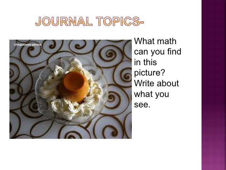 I have used picture prompts to show children that math is not confined to an hour a day, in my classroom.